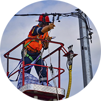 Desarrollo de obras y construcción en líneas energizadas. Contamos con 9 brigadas con personal certificado y disponemos de equipos marca ALTEC para trabajos en redes hasta 69kv; construcción de redes eléctricas de media y baja tensión, así como el montaje de bancos transformadores.
